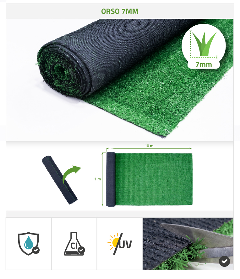Gazon synthétique ORSO 1m x 10m - 7mm